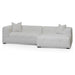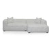 100% Polyester upholstery in grey finish Sturdy Pine wood frame Pine wood legs equipped with floor protectors Tight back and tight seat ideal for 3 people Right chaise formation with square arms Foam filling with web-spring suspension Product has soft-medium seat firmness Suitable for commercial use 500kg weight capacity Product is fully assembled Melbourne pick-up and delivery only