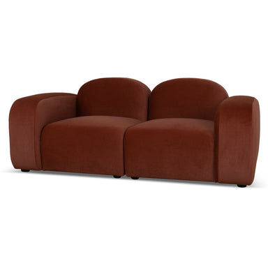 Umber orange polyester upholstery Plywood frame construction Equipped with spring suspension Timber legs Foam filling Soft-medium seat firmness Sea...