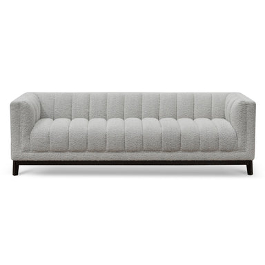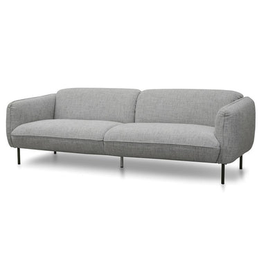 Upholstered in light speckle grey fabric Metal legs in a black finish Medium to firm cushions Minor assembly requiredDimension: 232cm (L) x 96cm (W...