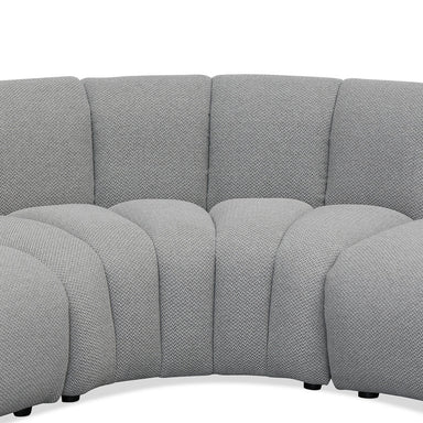 Upholstered in a light textured grey fabric Short and robust club legs in black Curved silhouette Matching pipe sitching along the edge Seats up to...