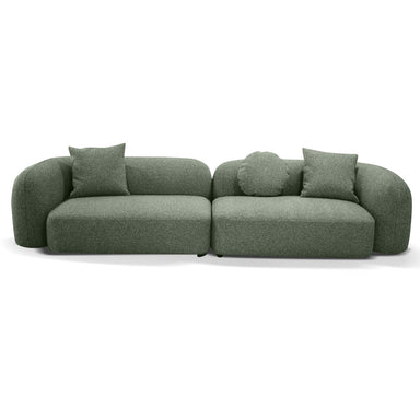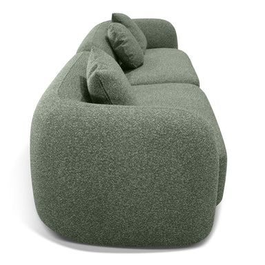 Green polyester upholstery Poplar timber frame High-density LVL foam filling Poplar wood legs Web suspension Curved backrest and armrests Medium-fi...