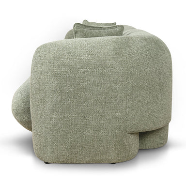 Burnt green polyester upholstery Pinewood frame construction Soft-to-medium seat firmness Web and spring suspension Foam filling Bold curved design...