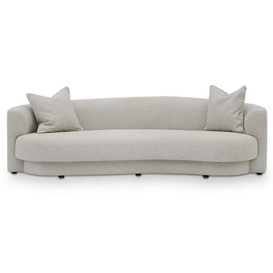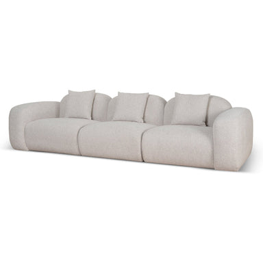 Cream polyester fabric upholstery Cushions filled with 30kg/m³ foam, feathers, and fibers Plywood and solid wood construction Soft-medium seat firm...