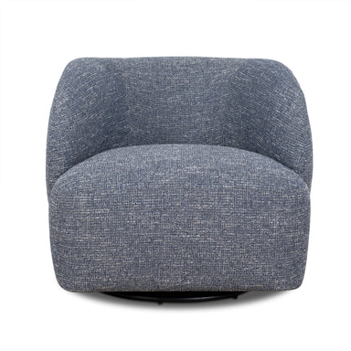 Rich Prussian blue polyester upholstery Pine wood frame construction Web and spring suspension Durable metal steel turntable Foam filling Soft-to-m...