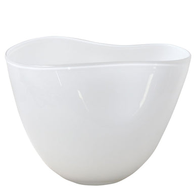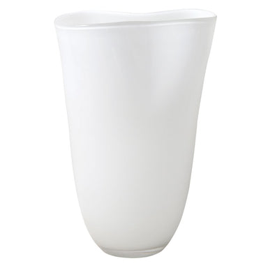 Enhance your interior with this elegant, sculptural vase, available in two sizes. Crafted in sleek, glossy white glass, its fluid, organic shape ev...
