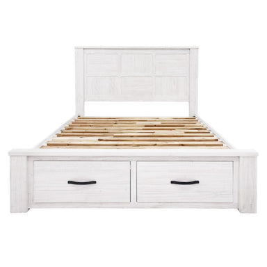 The Florida Wood Bed with Storage - Queen is a smart and modern contemporary design with a panelled chequer-board bed head. Finished in Florida whi...