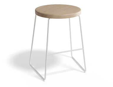 Hugo Bar Stool - White - Vintage PU Seat - 77cm Bar Height - Vintage Tan Seat