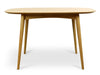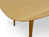 Our Scandinavian 1.3m fixed rounded rectangular dining table - natural offers a perfect blend of simplicity and elegance. Crafted with a smooth oak veneer top and solid oak timber legs, this table's sleek design and smooth, rounded corners bring a modern yet timeless touch to your dining space. Ideal for small to medium-sized rooms, it comfortably seats 2-4 people while maintaining a clean and minimal aesthetic.