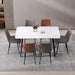 Elevate your dining experience with our 120x60cm Minimalist Slate Kitchen Dining Table. Crafted with a luxurious marble tabletop and solid metal legs, this table is a blend of style and functionality. It's known for its remarkable durability, ease of cleaning, resistance to high temperatures, and sleek, rounded corners. The set offers 5 tabletop styles and two chair color options (grey and brown).