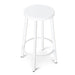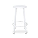 Introducing the 65cm Timber Seat Bar Stool in White, a stylish and functional addition to any kitchen or bar area. This set of two bar stools features a sturdy steel frame and a durable timber seat, ensuring long-lasting use. The white finish adds a touch of elegance to any space, while the steel footrest provides added comfort. The flat circular seat and four tubular legs create a sleek and modern look, perfect for contemporary interiors. With a weight capacity of 120 kg, these bar stools are suitable for all body types. Plus, they come fully assembled for your convenience. The dimensions of each stool are 37.5cm (W) x 37.5cm (D) x 65cm (H), with a seat diameter of 34cm and a seat thickness of 3cm. Elevate your home decor with the 65cm Timber Seat Bar Stool in White.