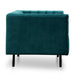 Upholstered in quality and striking Teal Green fabric Refined button tufted details on cushioned seat and backrest Clean, square lines add a contemporary revision to a classic design Strong and stable metal legs in a black coated finish One matching bolster cushion included