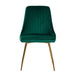 The dining chairs are designed with a scallop shell backrest, golden metal legs, and soft velvet upholstery for maximum comfort and luxury. They also feature reinforced steel fasteners, anti-skid feet, and high-density foam pads for durability and support. This set is the perfect combination of modern minimalism and perfect proportion, creating a comfortable and beautiful dining environment.