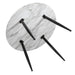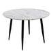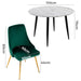 Introducing the Velvet Elegance Dining Set, a luxurious and stylish addition to any dining room. This set includes four soft and plush green velvet dining chairs and a white round table with a stunning marble effect. Made from solid MDF wood, the table features a charming circular contour and smooth edges, inspired by medieval furniture. The legs are made of powder coated steel and have an anti-skid design to protect your floors and provide stability. The tabletop is also easy to clean, making maintenance a breeze.