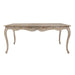 Lille dining table exudes vintage look with its design and colour. White washed finish on the dining table presents a timeless look that will stand out in any living room. The top of the table is enough spacious to meet your need.