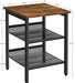 This end table offers versatile storage with two strong mesh shelves. Attach each shelf flat or at an angle to perfectly display magazines, books, or any other items. Enjoy the convenience of having your items perfectly arranged in your living space.