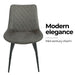 The Tyler Fabric Dining Chair effortlessly combines modern elegance with a touch of mid-century charm, making it a perfect addition to your dining area. Featuring a plush fabric, each chair is adorned with a detailed diamond quilting pattern on the backrest and seat, adding a layer of sophistication and visual interest. The soft, padded seat ensures comfort during long dinners or engaging conversations. Supported by sleek, black metal legs that provide stability and a striking contrast, these chairs not only offer a chic aesthetic but also boast durability. The Tyler Fabric Dining Chair is designed to elevate any dining space with its stylish appearance and inviting ambiance. Whether used for casual family meals or formal gatherings, these chairs are sure to impress with their comfort and design.