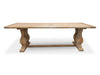 Reclaimed elm timber veneer top Solid timber legs All natural products are inspected and images are sent prior to dispatch Seats 8-10 people Two-man assembly required due to weight of table. Each handmade piece will naturally have distinctive characteristics such as; cracks, splits and imperfections due to the nature of the wood. Any variations in colour, texture and pattern are not faults but should be appreciated. Differences between shipments are to be expected.
