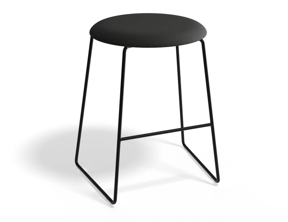 The black Hugo Low Stool with fabric seat is an ideal seating option for hotels looking to add a touch of style and sophistication to their decor.