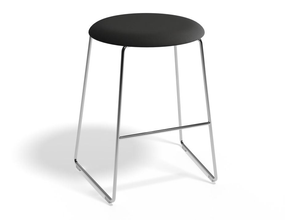 Upgrade your restaurant or hotel seating with the Chrome Hugo Low Stool with a stylish fabric seat.