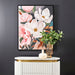 Add a touch of timeless elegance to your home with this beautifully hand-painted floral artwork. The delicate brushstrokes capture the soft petals of blooming flowers, exuding grace and tranquillity. The rich, warm tones bring life and vibrancy to any space, making it a perfect centrepiece. Expertly framed in a sleek black frame, this piece is ideal for those seeking to enhance their decor with sophisticated, feminine handcrafted art.