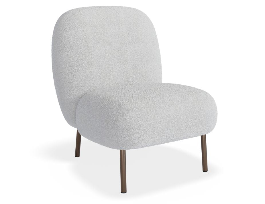 Available in a chic stone boucle color, the chair features legs made from stainless steel in brushed matte bronze, brushed matte gold, or matte black finishes. The 100% polyester fabric is durable and easy to clean, and the basic assembly process allows for quick setup. With a weight rating of 120 kg, this lounge chair is designed for lasting use.