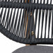 Steel frame structured in a modern style design Anthracite grey cushion 4.5mm round rope forming a curved backrest Acacia wood legs 120kg weight limit Not suggested for commercial use Product comes flatpack