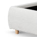 - Cream white boucle polyester upholstery MDF construction Wooden slats and feet Accommodates a Queen bedframe Weight capacity: 350kgs Product comes flat packed and requires two-person assembly and a screwdriver Note: Bed mattress not included Please ensure your mattress is compatible with the provided slat construction of this bed frame.