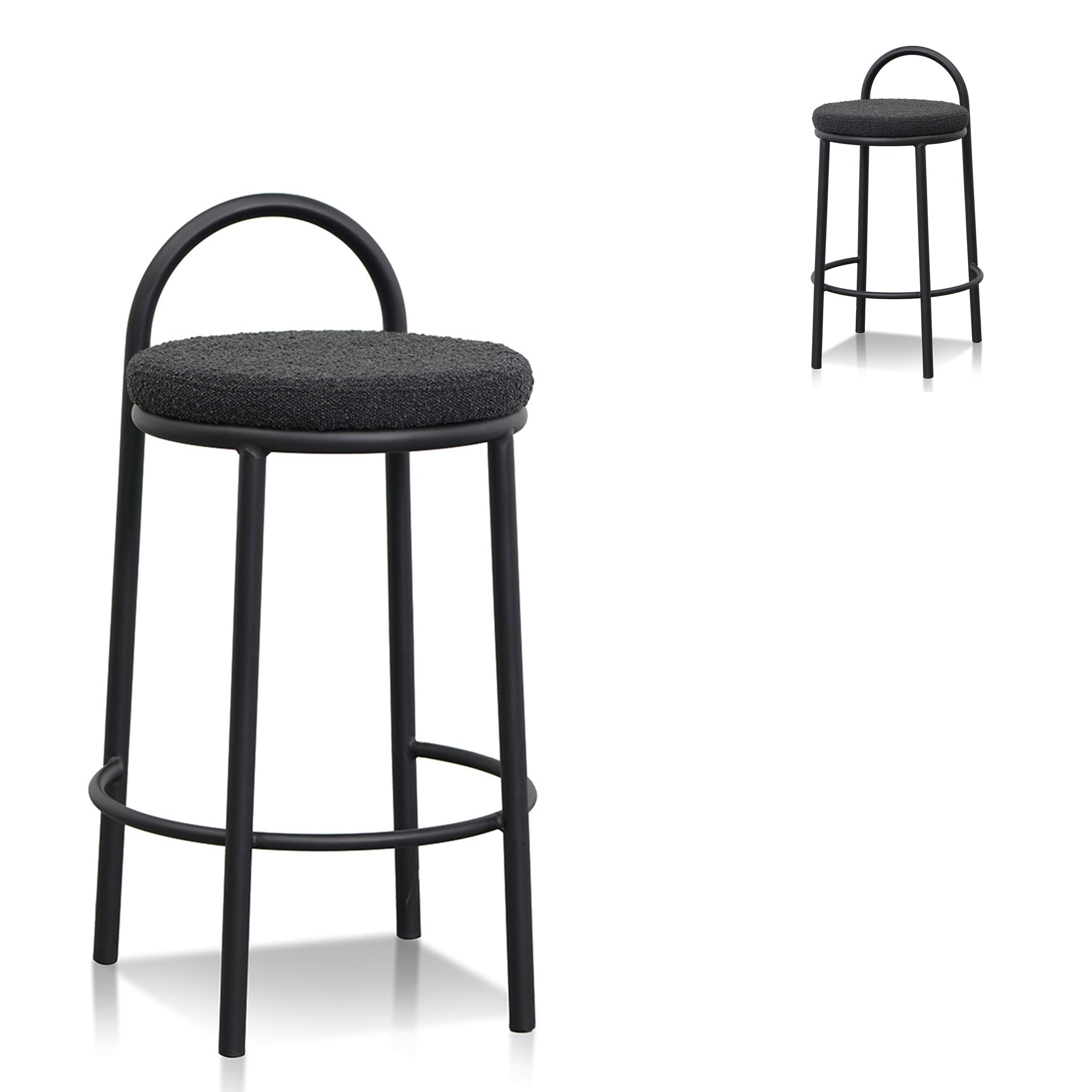 Set of 2 - Mclean 63cm Black Frame Bar Stool - Black Boucle